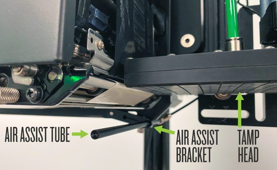 A common support issue we hear from end-users is “the vacuum doesn’t work” because the labels are not remaining on the tamp head. More often than not, this issue is related to the air assist components and not the vacuum itself. As long as the air assist tube is not damaged or bent, a simple adjustment to the mounting bracket and/or air assist tube angle resolves this issue.